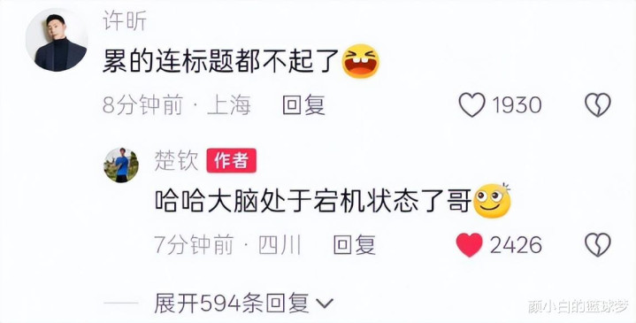 许昕与王楚钦在社媒上聊天,王楚钦表示大脑处于宕机状态了。(对自己世界杯夺冠的一种无声回应吧)